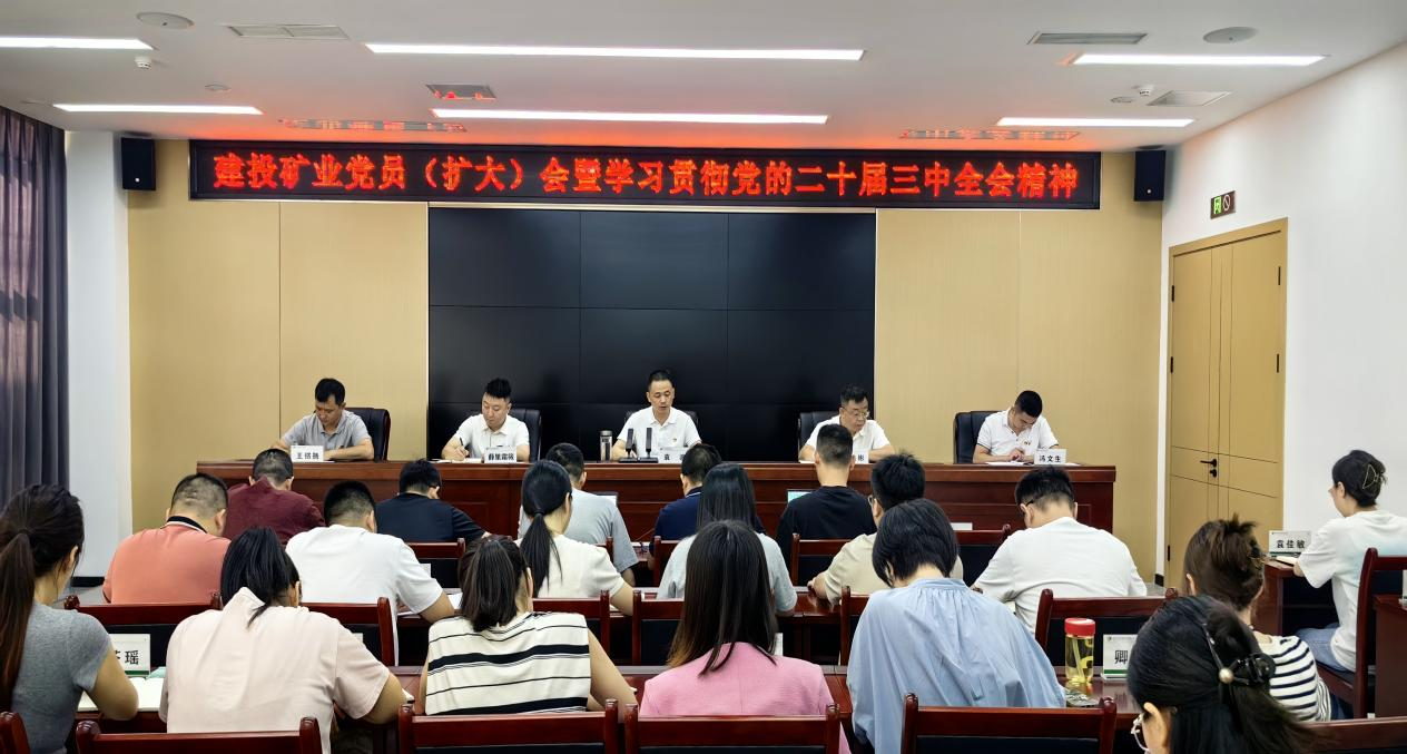 7月26日,建投礦業(yè)黨支部召開黨員(擴大)會議,認真?zhèn)鬟_學(xué)習(xí)黨的二十屆三中全會精神,以及省委、市委、區(qū)委常委會(擴大)會議精神,研究公司貫徹落實意見。公司全體人員參加會議。